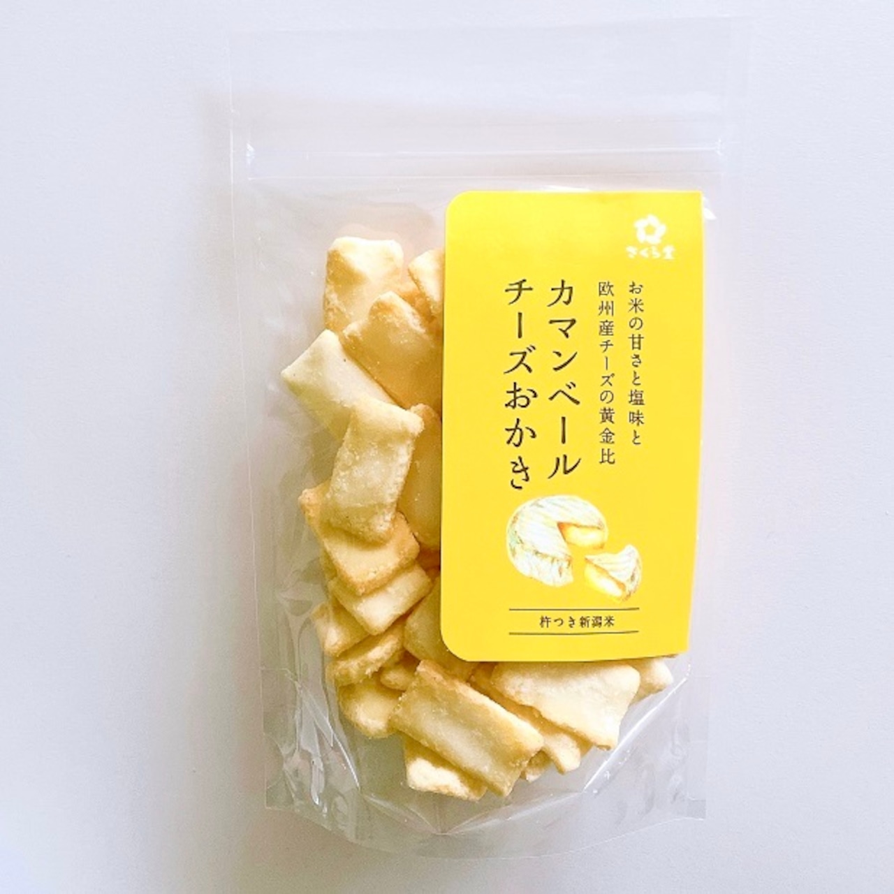 欧州産のカマンベールチーズパウダーを使用した、あっさり塩味のおかきです。